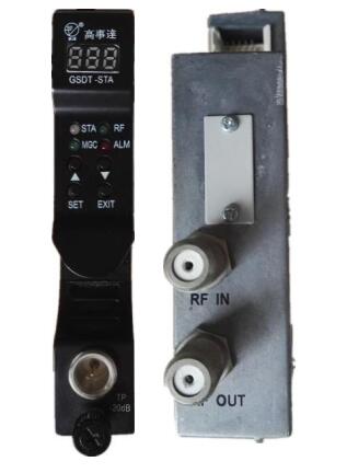The GSDT-STA provides amplification of forward path RF signals in headend or hub locations. It uses a RF amplifier integrated circuit to provide high linearity, low-noise, and low distortions. It can adjust the integrated attenuator to obtain specific RF output levels, and it can easily compensate high-frequency roll-off due to headend cabling with the integrated slope control.